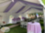 Take a look to this full and gorgeous purple and white decoration for our 20 x 40 Heavy Duty Tent/Wedding Tent